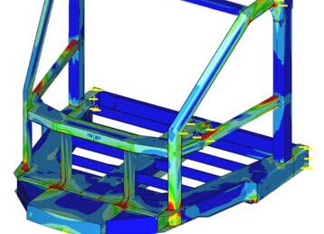 CAElliott performed a series of static structural studies using finite element analysis with different load cases for this operator cab frame. Simulated values for displacement, stress and modal frequencies were reported. The report was part of a compliance study required for the commissioning of a commuter train for a large city in the South Eastern United States.