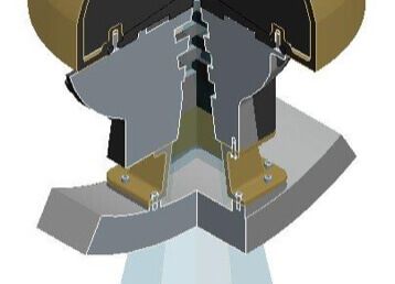 This is from a conceptual design study for a cobalt-based radiation therapy head that was intended to be used in conjunction with magnetic resonance imaging and a multi-leaf collimator to provide real-time dosimetry for treatment of tumours in oncology patients.